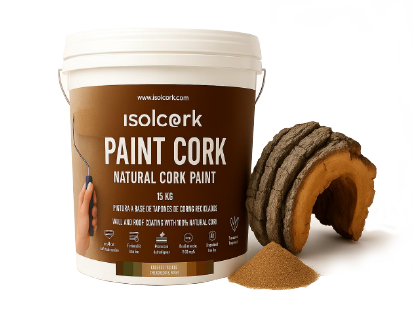 Thermal finish paint in color, based on selected cork particles.