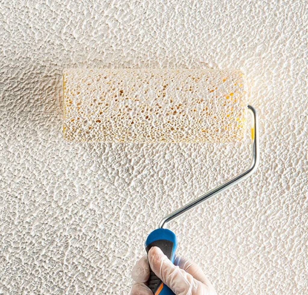 It is applied mechanically using a texturing roller. The application must consist of two cross coats and provide a minimum thickness of 0.04 inches (1 mm).