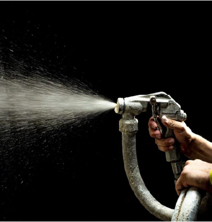 It is applied mechanically using a texture spraying machine. The application must be two cross coats and deliver a