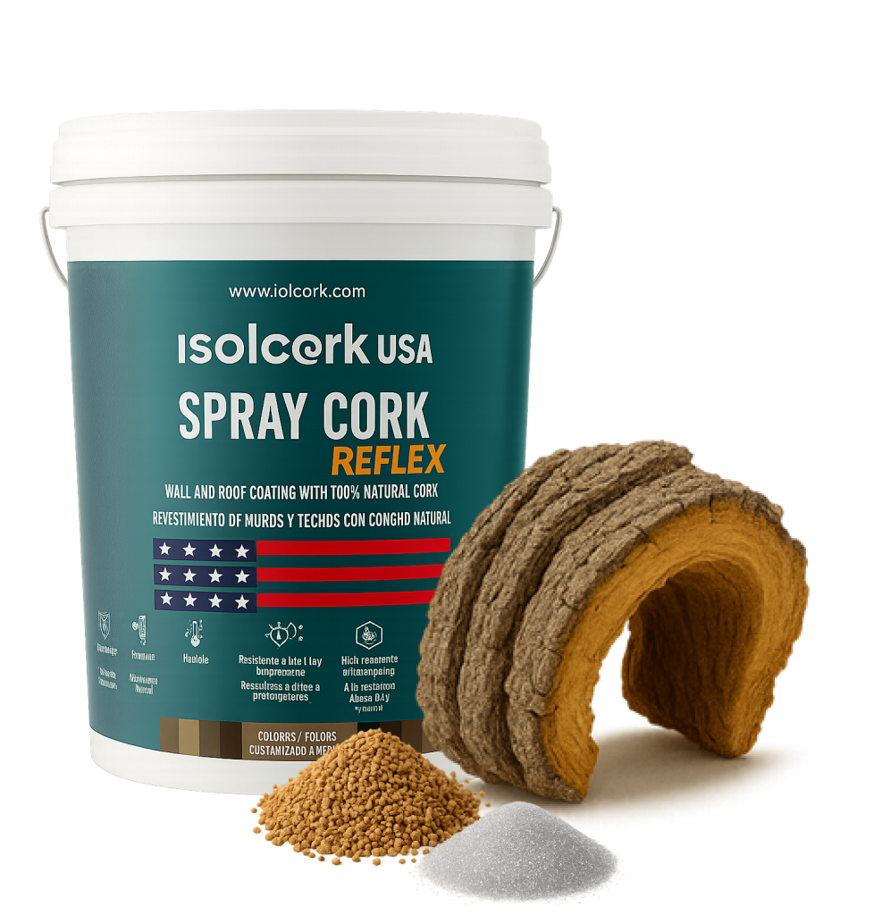 High-performance thermal coating that combines aesthetic versatility with advanced reflective microsphere technology, enhanced by the natural insulating properties of cork. The reflective microspheres deflect solar radiation, reducing heat absorption and maintaining more stable indoor temperatures. This translates into greater energy efficiency, lower air conditioning demand, and protection of surfaces from UV radiation. Its formulation reduces thermal bridges and meets the quality standards of the most demanding professionals.
